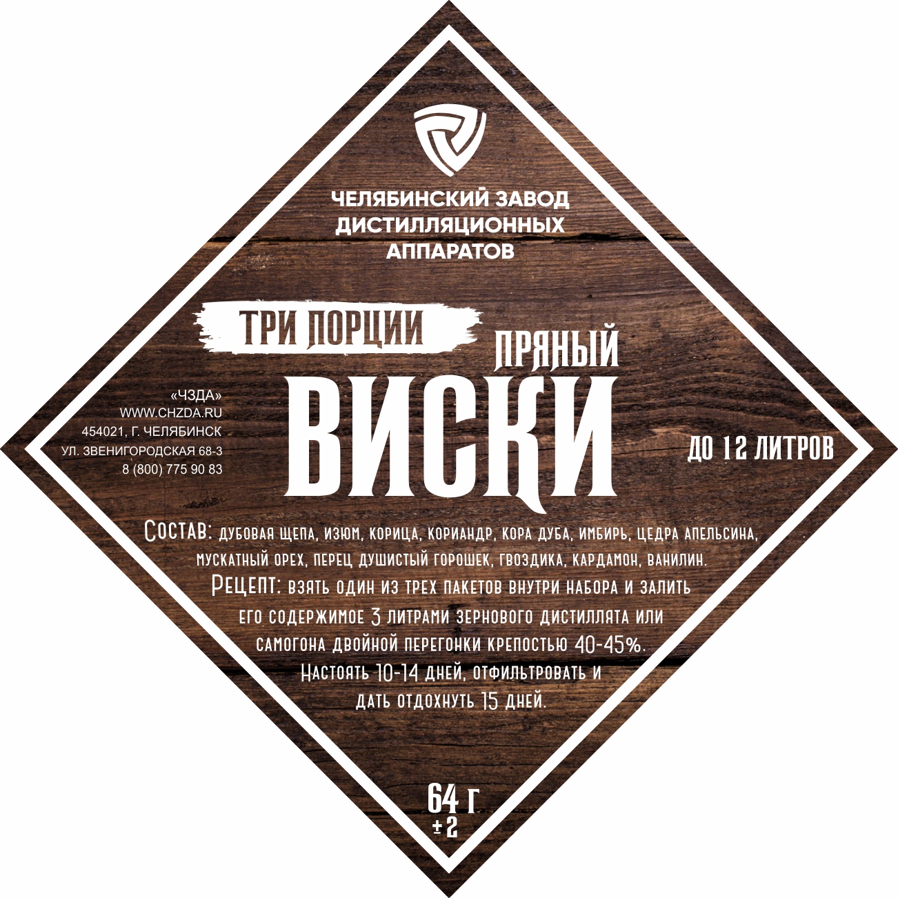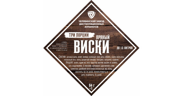 The set of herbs and spices "Spicy Whiskey" includes: coriander, cloves, sweet pepper, dried ginger, nutmeg, orange peel, chili, cardamom, vanilla, raisins.