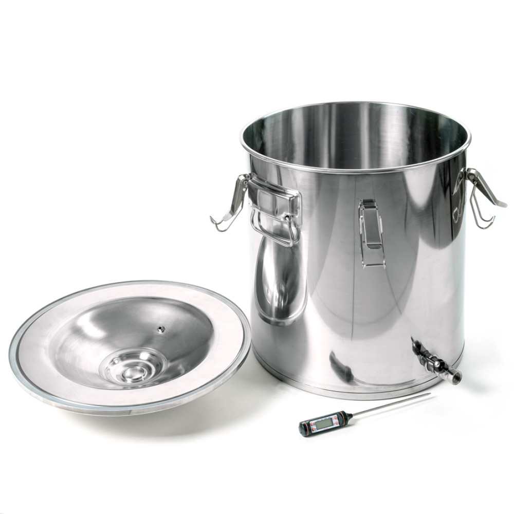 CheckoutDistillation cube 50/400/t with a clip of 1,5 inches with a wide mouth of 400 mm - a real find for anyone who likes to have fun for a tasting of alcoholic beverages of high purity. It made a cube of solid stainless food steel, which does not change its properties under high temperatures. This ensures absolute safety of the process and the final product becomes exactly the palatability of alcoholic drinks valued homemade.