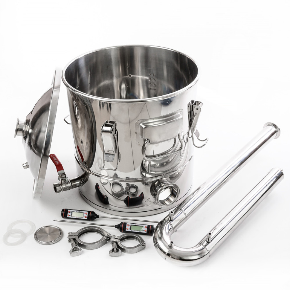 - Watch the thermometer on the distillation cube. If the reading exceeds 100°C, turn off the heating source and wait for the brazier to cool down, disassemble it to perform an inspection to find a blockage.